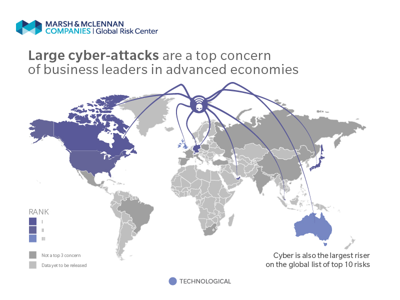 Las empresas identifican los riesgos económicos y sociales como los más preocupantes, y los riesgos cibernéticos como los que ganan cada vez más importancia de acuerdo con datos de la encuesta Encuesta Global a Directivos del Foro Económico Mundial 2017, divulgados por los socios estratégicos del Informe de Riesgos Globales del Foro, Marsh & McLennan Companies y Mars- Zurich Insurance Group.