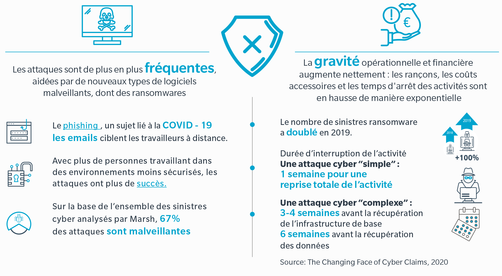 Les progrès technologiques s’accélèrent et transforment radicalement nos métiers. En parallèle, les expositions des entreprises au risque cyber continuent de croître, ce qui représente la possibilité de pertes économiques substantielles. Les dernières recherches et analyses de Marsh ont été présentées dans le rapport “Le nouveau visage des sinistres cyber” qui s’appuie sur des données sinistres de Marsh Continentale Europe, sur l’expérience et l’expertise de Wavestone et CMS, pour mettre en avant des solutions pratiques de gestion du risque cyber et particulièrement des ransomwares.