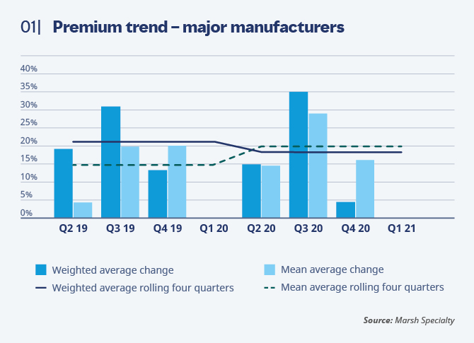 The insurance pricing trends for major manufacturers and OEMs in the first quarter of 2021 are based on: