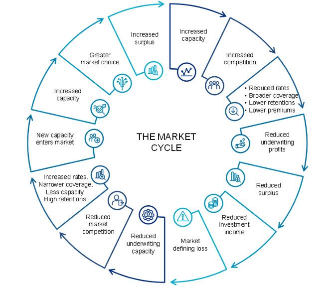 The current market conditions follow a long period of low interest rates, which made insurance a viable investment class for institutional investors seeking financial returns. There followed an influx of capacity into the market, creating increased competition, driving down rates, and widening the cover insurers were willing to offer in order to win and retain business.
