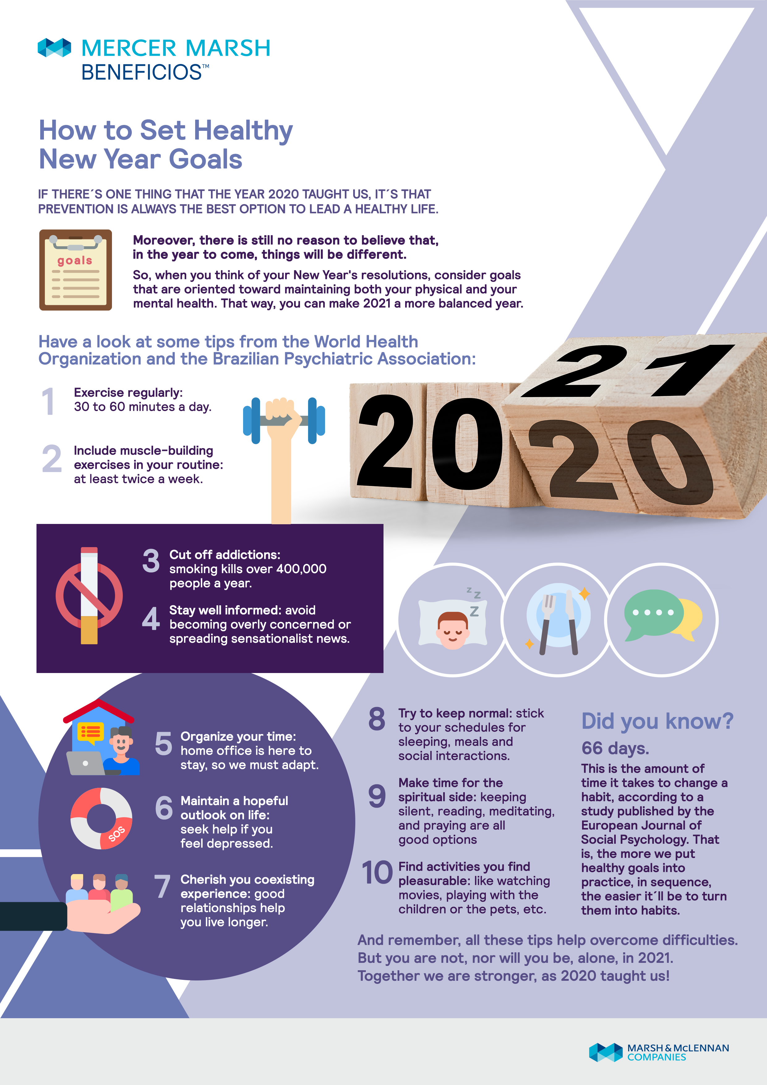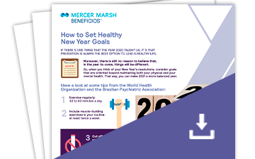 Este material faz parte do programa de Qualidade de Vida da Mercer Marsh Benefícios. Ele é apoiado por ações e outros projetos que ajudam a melhorar a qualidade de vida nas empresas em que prestamos consultoria. Caso a sua empresa ainda não tenha nossos serviços, fale conosco.